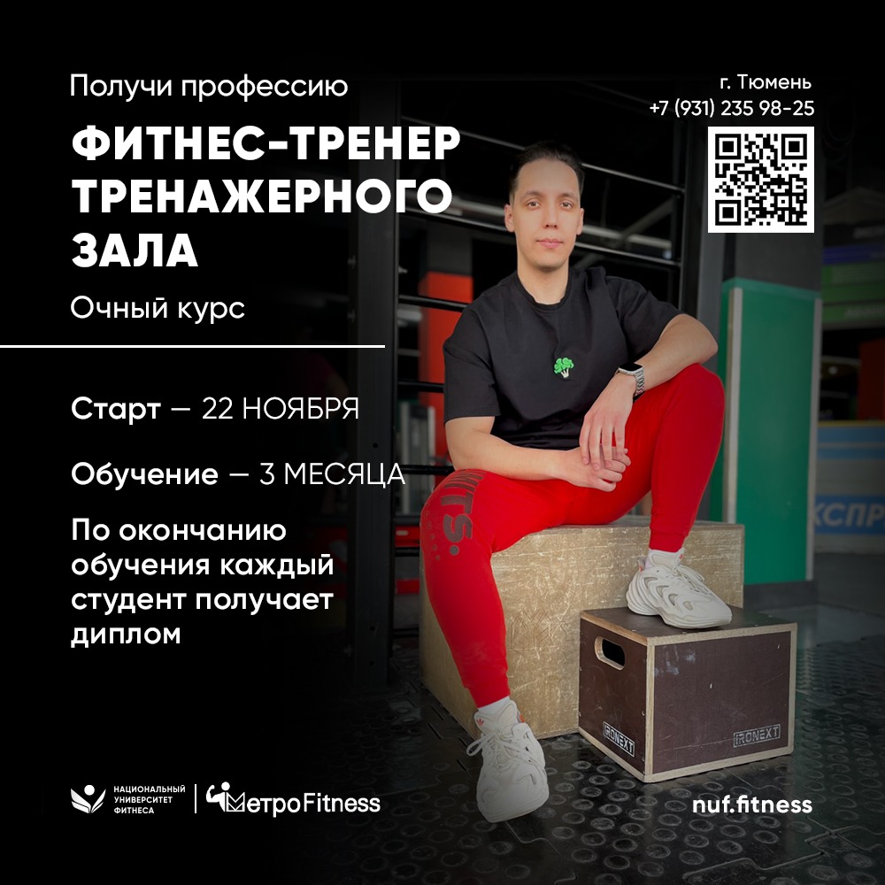 Предоставляем знания и навыки по основным направлениям: • Основы анатомии, • Основы физиологии, • Основы спортивной биохимии, • Основы биомеханики двигательной деятельности, • Спортивная медицина, • Основы нутрициологии, • Теория и методика фитнеса и бодибилдинга, • Методика функционального тренинга, • Основы продвижения в социальных сетях.